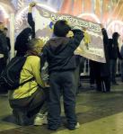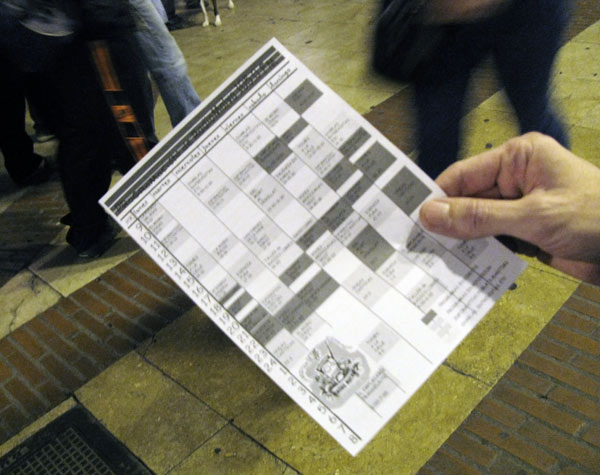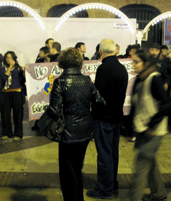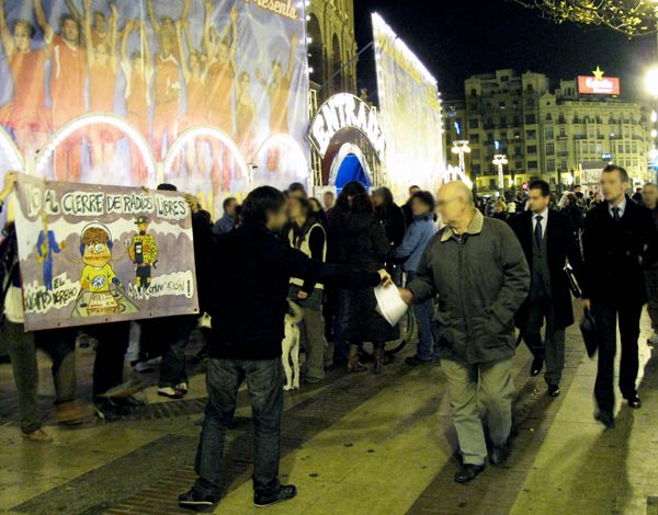 Durante la concentración se han repartido hojas con la parrilla de la programación de la radio, se ha repartido también el manifiesto y se ha invitado a la gente que pasaba a dar su opinión sobre la libertad de expresión.