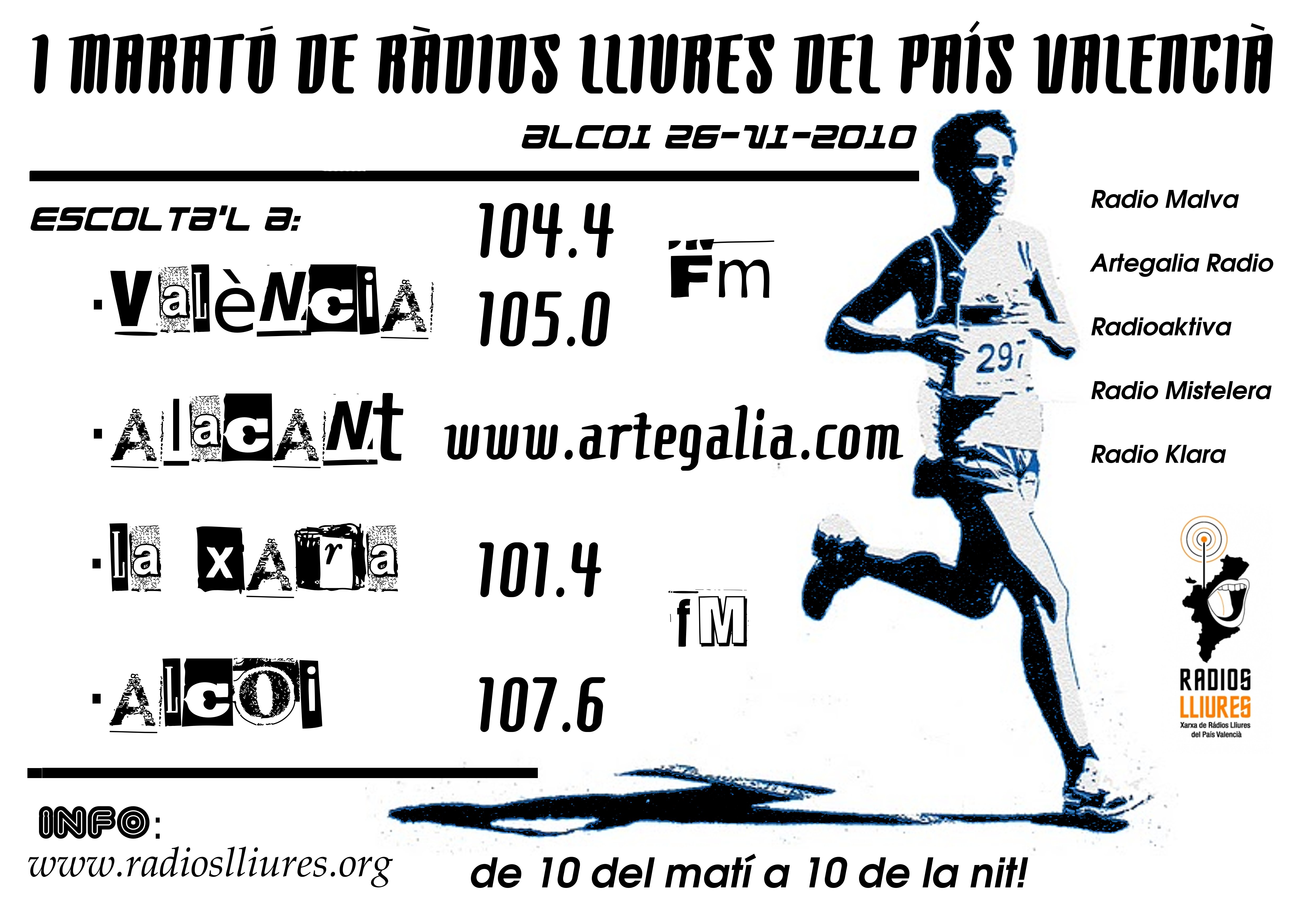 Se realizan en Alcoi(Alacant) los segundos encuentros de radios libres del país valencià(xarxa de radios lliures del PV). Durante dos dias se llevarán a cabo actividades que permitan el acercamiento de los proyectos de estas radios libres, intercambiando así experiencias, conocimientos técnicos y sumar fuerzas y estrategias contra una nueva ley que amenaza a estos medios alternativos de información, se hará también una maratón radiofónica retransmitida por las radios que conforman la xarxa.