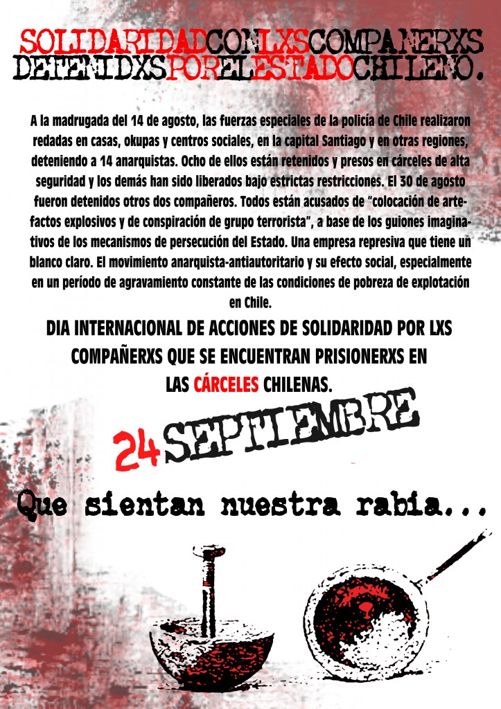 Sin categoría ACCIONES SOLIDARIAS 24 de SEPTIEMBRE 2010 Convocatoria mundial de acciones solidarias por los presos anarquistas secuestrados por el estado chileno. No más montajes policiales infames!!! Pincha el cartel…. Share this = Compartir en Enviar un enlace a un amigo por correo electrónico (Se abre en una ventana nueva) Correo electrónico Imprimir (Se abre en una ventana nueva) Imprimir TweetMás Compartir en Telegram (Se abre en una ventana nueva) Telegram Compartir en WhatsApp (Se abre en una ventana nueva) WhatsApp Me gusta Cargando... Relacionado