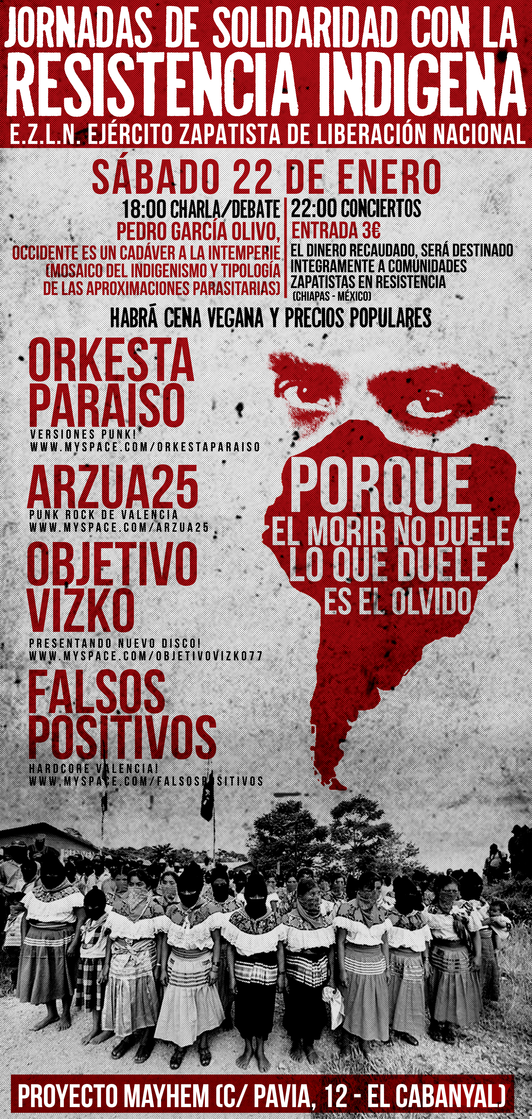 CABANYAL - EL BARRIO Jornadas de solidaridad con la resistencia Indígena en el Proyecto Mayhem El Sábado 22 de Enero en el Proyecto Mayhem c/Pavía 12- El Cabanyal Para más info pincha el cartel Share this = Compartir en Enviar un enlace a un amigo por correo electrónico (Se abre en una ventana nueva) Correo electrónico Imprimir (Se abre en una ventana nueva) Imprimir TweetMás Compartir en Telegram (Se abre en una ventana nueva) Telegram Compartir en WhatsApp (Se abre en una ventana nueva) WhatsApp Me gusta Cargando... Relacionado