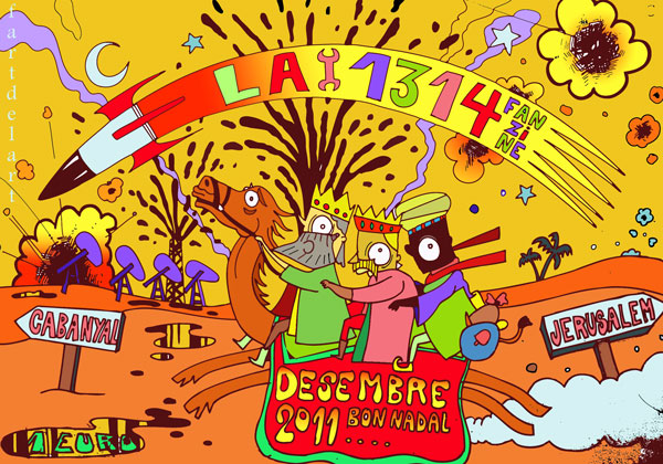 La 13/14fanzine es un proyecto de fanzine con colaboradores fijos (fijo que los llamamos 17 veces cada mes para que colaboren) y otros no tan fijos (mutantes) y otros que aun no han colaborado (colaboradores inesperados) que se des-arrolla en els poblats maritims de valencia pero que abarca a cualquier planeta (incluido los gaseosos) ,y ya sabeis, de tirada menstrual.Su contenido se debate entre el escombro-yonki y la corrección académica, entre el barrio autoctono y el alternativo, entre lo espiritual y el andergraun guarro, entre la añoranza anarkista y el futuro post-apocalíptico,entre la cantidad-calidad y lo económico, entre la autogestión y vender drogas, y entre pasarnoslo bien o pasarnoslo más bien.EN cuanto a la última pregunta, no hemos llegado a consenso: Uno de nosotros propone:«Yo, lo tengo claro, cuando vea que se acerca el fin del mundo me voy a hinchar a dar patadas a los coches,escupir en los escaparates hasta resquebrajarlos, hacer cortes de manga sin parar y gritar y reirme a carcajadas con eco.»Miestras que otro cree que el plan ideal es sentarse en su silla a beber orujo mientras contempla los últimos 6.8 minutos del mundo.Afortunadamente los demás, sabemos que el Sol es una estrella del tipo espectral G2 a la que le quedan cinco mil millones de años aún y que la probabilidad de que un meteorito lo suficientemente grande impacte con este planeta es menor que la que te toque la lotería, si no te llamas Fabra, a si que estamos tranquilos.