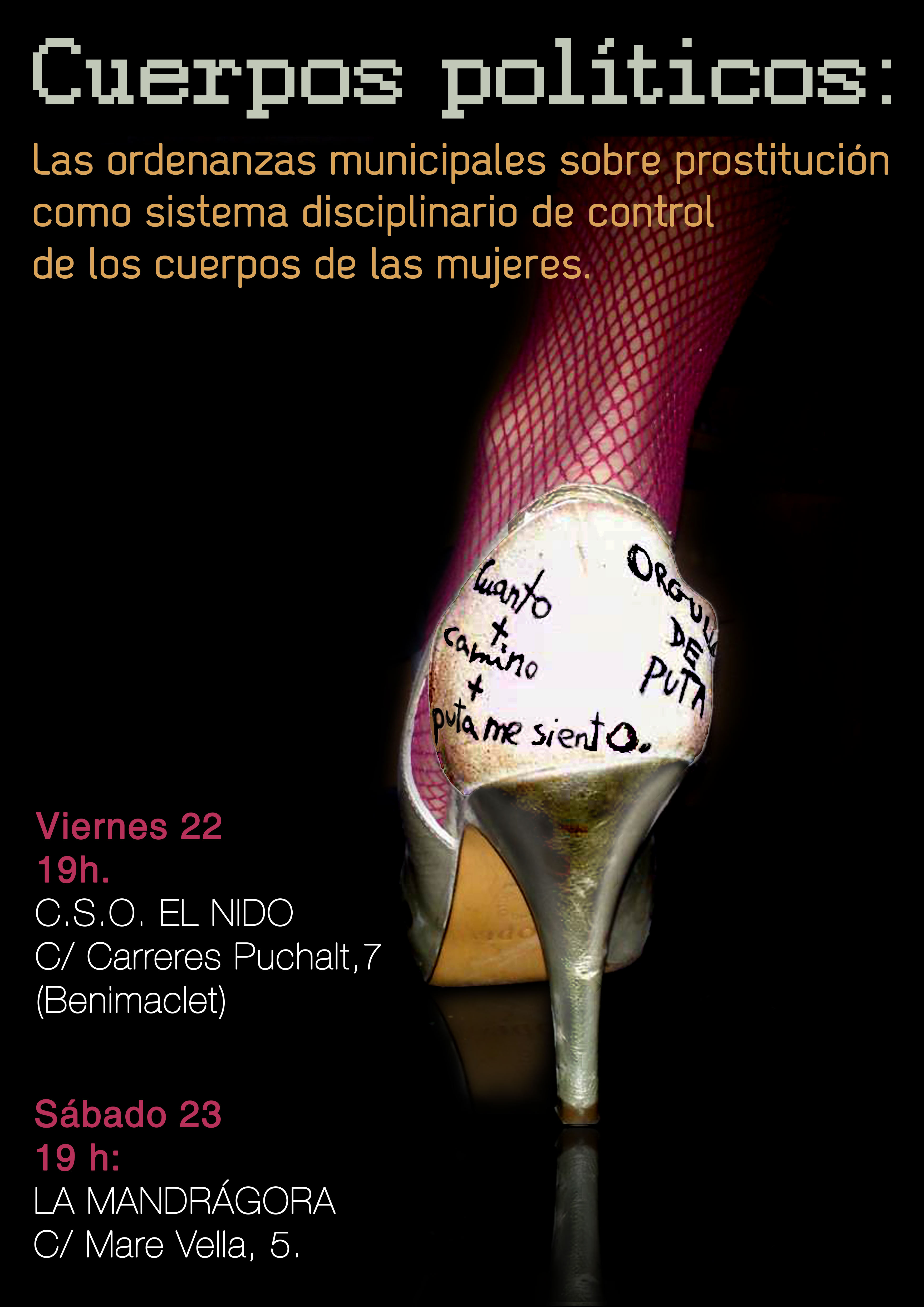 Viernes 22 de Marzo, 19h. en CSO El Nido (C/Carreres Puchalt 7, Benimaclet). Sábado, 23 de marzo en LA MAndrágora, C/Mare Vella, 5.