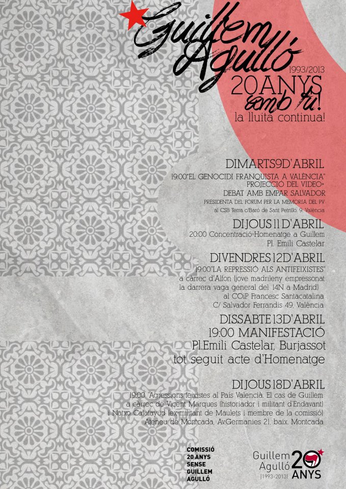 CONTENIDOS VARIOS Jornadas Antifascistas en memoria de Guillem Agulló Share this = Compartir en Email a link to a friend (Se abre en una ventana nueva) Correo electrónico Imprimir (Se abre en una ventana nueva) Imprimir TweetMás Compartir en Telegram (Se abre en una ventana nueva) Telegram Compartir en WhatsApp (Se abre en una ventana nueva) WhatsApp Me gusta Cargando... Relacionado