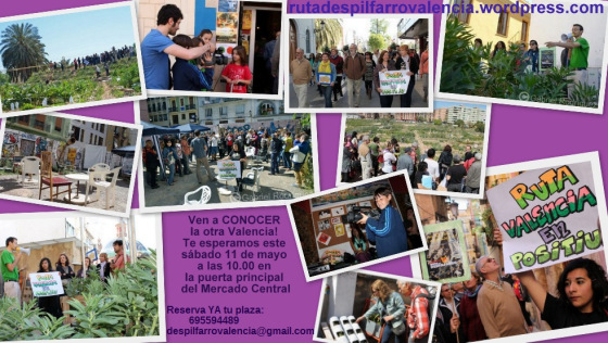 Si no las conoces o si quieres ver varias en una mañana, te invitamos este sábado 11 de mayo a participar en la RUTA VALENCIA EN POSITIVO, donde el apoyo mutuo, la economía del bien común, y diversos modelos de trabajo colectivo, se suman para darnos una mirada esperanzadora y positiva que tanta falta hace en estos momentos.