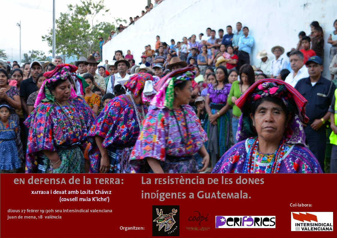 LATINOAMÉRICA EN DEFENSA DE LA TERRA: LA RESISTÈNCIA DE LES DONES INDÍGENES A GUATEMALA XARRADA I DEBAT AMB LOLITA CHÁVEZ DIJOUS 27 DE FEBRER 19:30 . LLOC: SEU INTERSINDICAL VALENCIANA. C/ JUAN DE MENA,18. Share this = Compartir en Haz clic para enviar un enlace por correo electrónico a un amigo (Se abre en una ventana nueva) Correo electrónico Haz clic para imprimir (Se abre en una ventana nueva) Imprimir TweetMás Haz clic para compartir en Telegram (Se abre en una ventana nueva) Telegram Haz clic para compartir en WhatsApp (Se abre en una ventana nueva) WhatsApp Me gusta Cargando... Relacionado