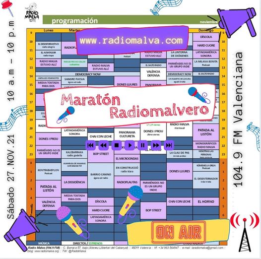 Latinoamérica Sonora Música pa´ bailar na más Maratón Radiomalvero emitido el sábado 27 de Noviembre de 2011 desde los Estudios de Radio Malva.