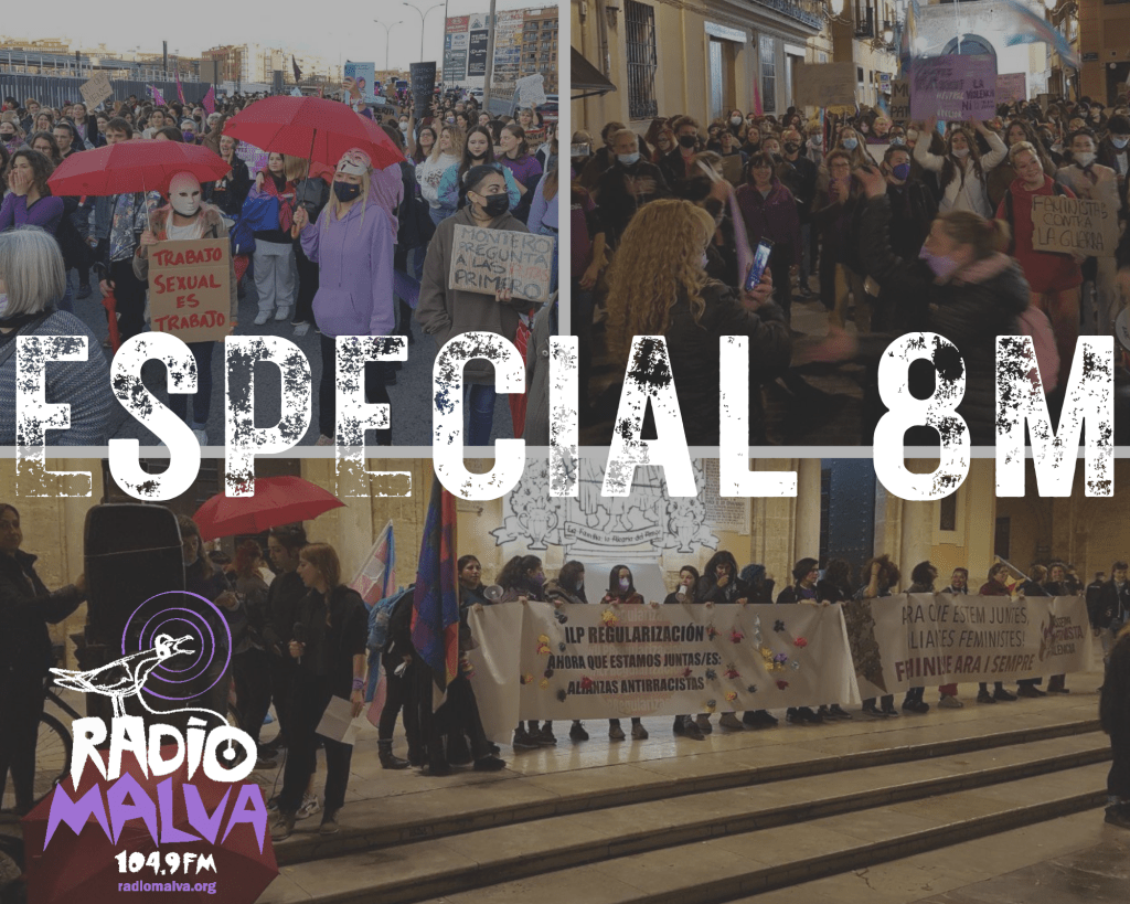 Este 8 de marzo tomamos las calles y también las ondas. 5 horas de emisión en directo desde los estudios de Radio Malva, con conexión con lxs compañerxs que estaban en la manifestación del 8M de Valencia y Castellón y retransmitiendo momentos claves, entrevistas a participantes de los actos y muchos sentires de muchas mujeres que nos han hecho llegar qué es para ellas el 8M. Desde luego no estábamos todas, nos faltan las asesinadas, las presas, las internas, las desplazadas… Pero emitimos a toda potencia feminista radiomalvera, con la esperanza de que nuestras ondas alcancen al menos algunas de ellas.