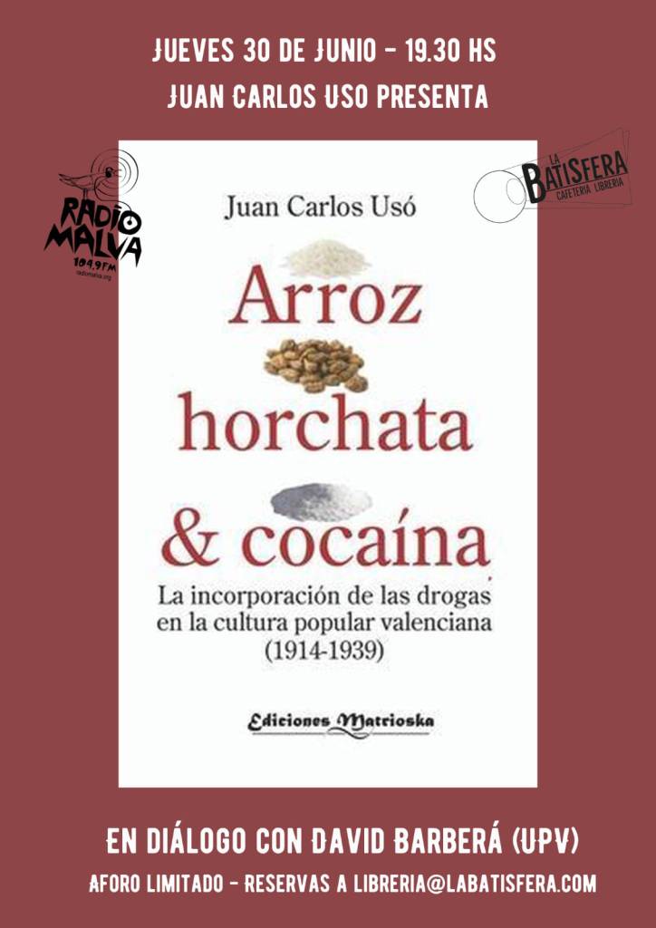 La Gallina Ciega, el club de lectura de Radio Malva 104.9FM en colaboración con la librería La Batisfera anuncia la presentación del libro Arroz, horchata y cocaína con la presencia de Juan Carlos Usó, autor del libro en conversación con David Barberà (UPV).
