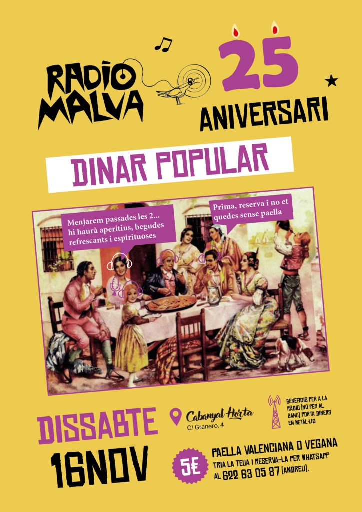 RADIO MALVA Dinar popular pel 25 aniversari de Radio Malva Share this = Compartir en Enviar un enlace a un amigo por correo electrónico (Se abre en una ventana nueva) Correo electrónico Imprimir (Se abre en una ventana nueva) Imprimir TweetMás Compartir en Telegram (Se abre en una ventana nueva) Telegram Compartir en WhatsApp (Se abre en una ventana nueva) WhatsApp Me gusta Cargando... Relacionado