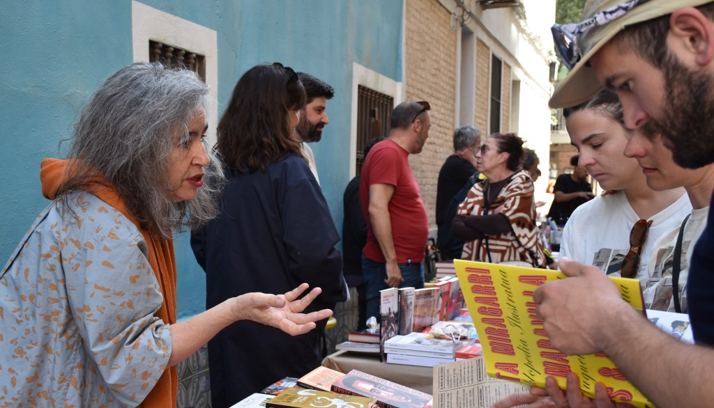 #SantJordialCabanyal2025. Llevamos los libros a la calle con motivo de la celebración del Día del libro 2025. Doce paradas pertenecientes a librerías y editoriales valencianas que aprovecharon la primavera para llenar de flores y literatura las calles de nuestro barrio. Todo un día (12 a 20 h.) con presentaciones de libros, lecturas públicas y comunitarias, radio en directo, firmas de autores seleccionados, y muchas más cosas en las calles del Cabanyal. La organización corre a cargo de la libreria La Batisfera en cooperación con Radio Malva, la radio del extrarradio.